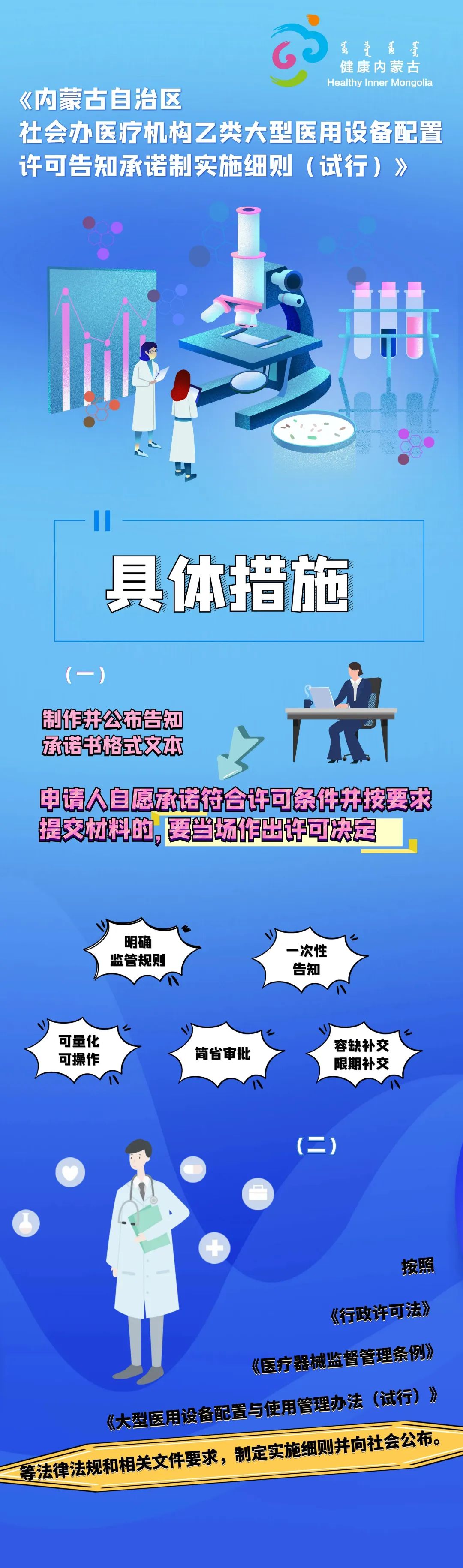 《内蒙古自治区社会办医疗机构乙类大型医用设备配置许可告知承诺制实施细则(试行)》的具体措施如下图所示: