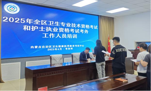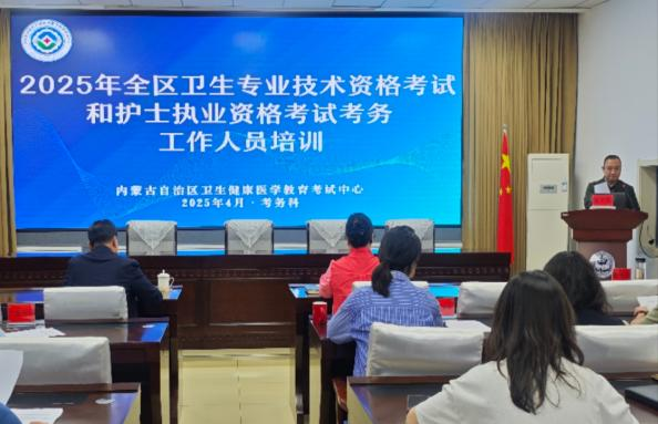 2025年度全国卫生专业技术资格考试和护士执业资格考试将于4月12-13日、19-20日、26-27日举行,为规范巡考工作,保证考试顺利进行,考区于4月8日召开了2025年全国卫生专业技术考试和护士执业资格考试内蒙古考区考务工作培训会,全面部署考试考务、巡考相关工作。考区乔文华主任出席会议并作讲话,全体考务工作人员参加会议。