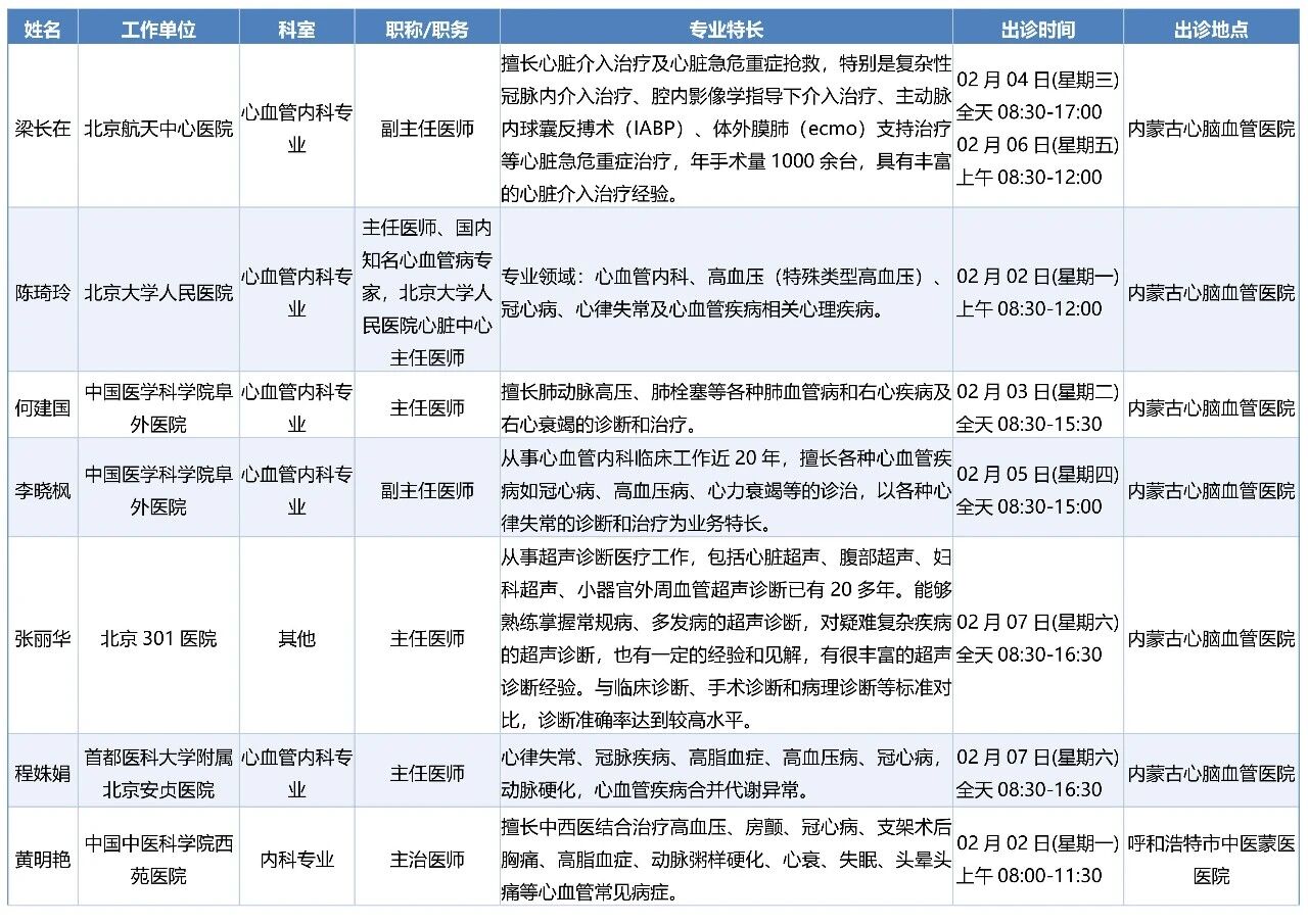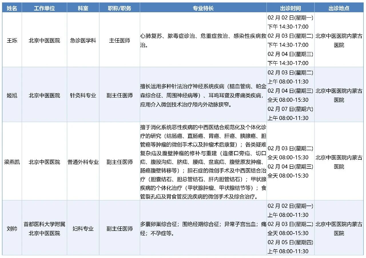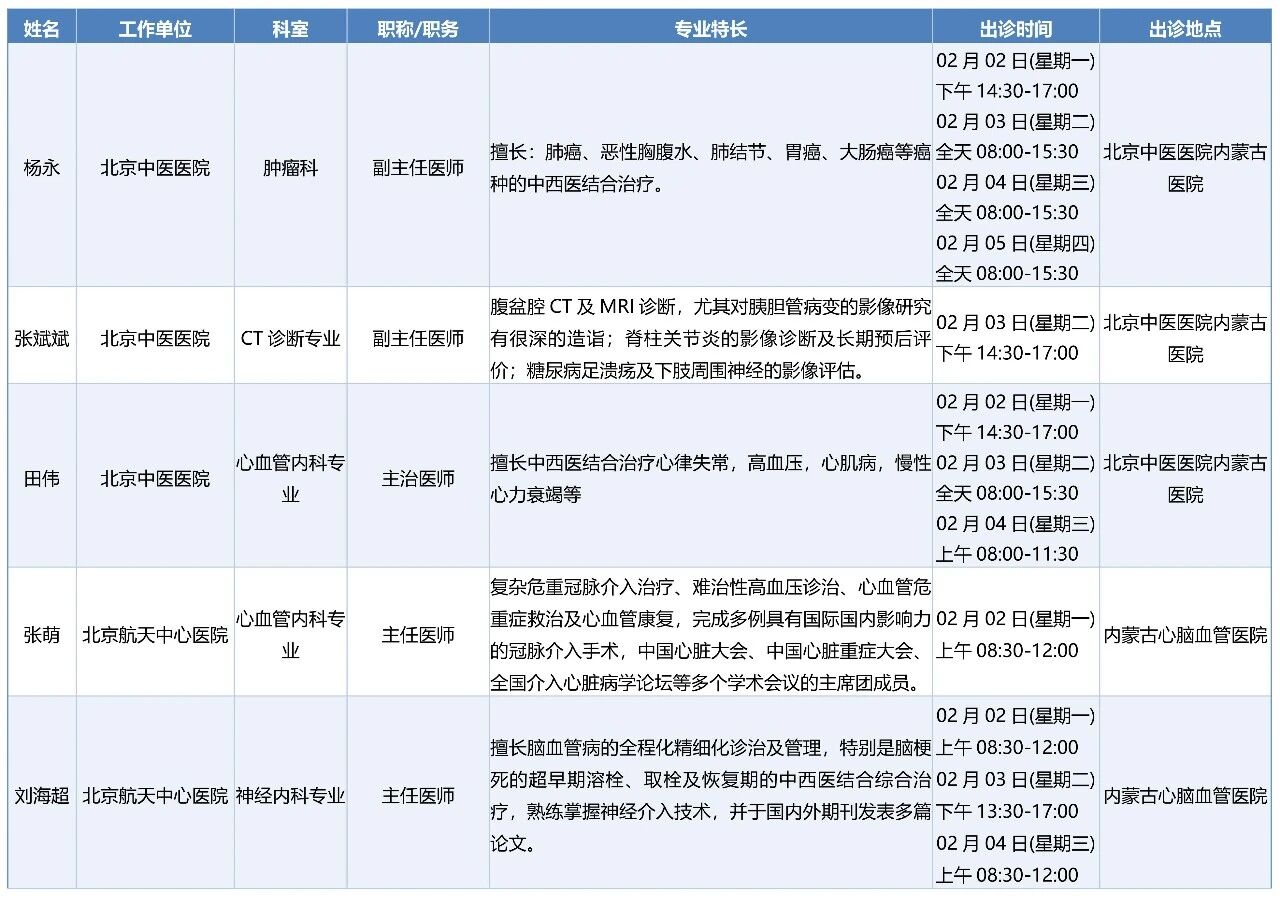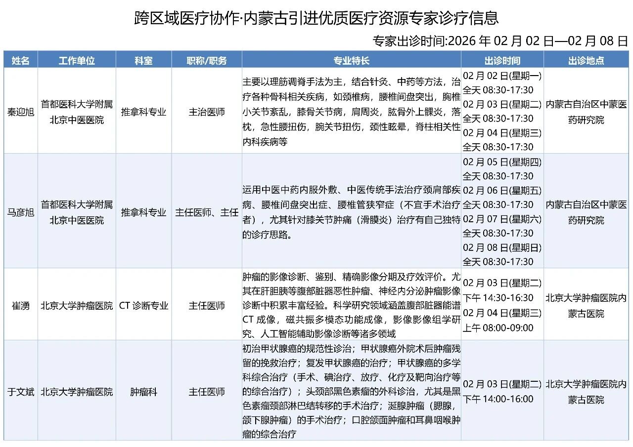 跨区域医疗协作-内蒙古引进优质医疗资源专家诊疗信息