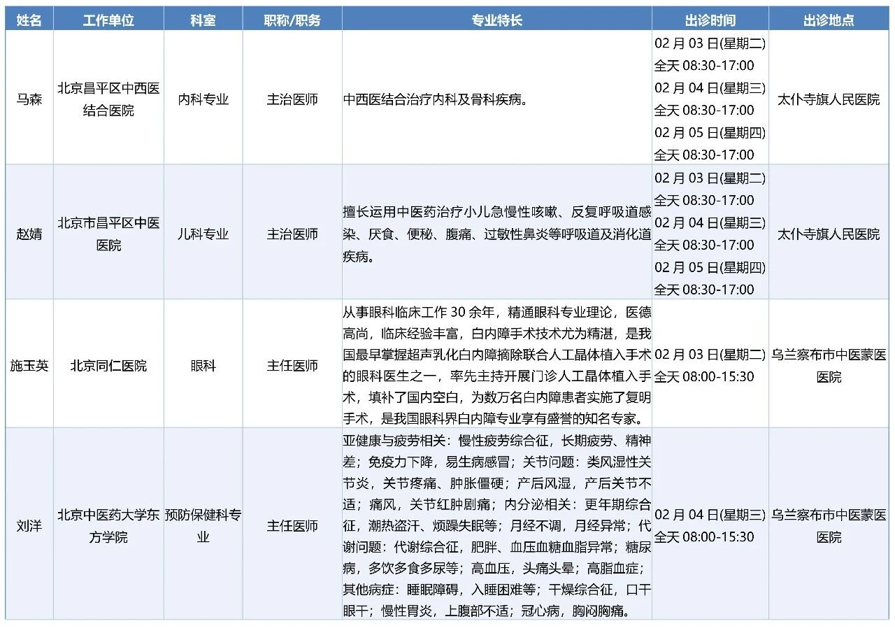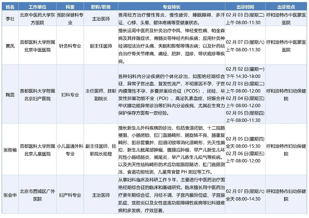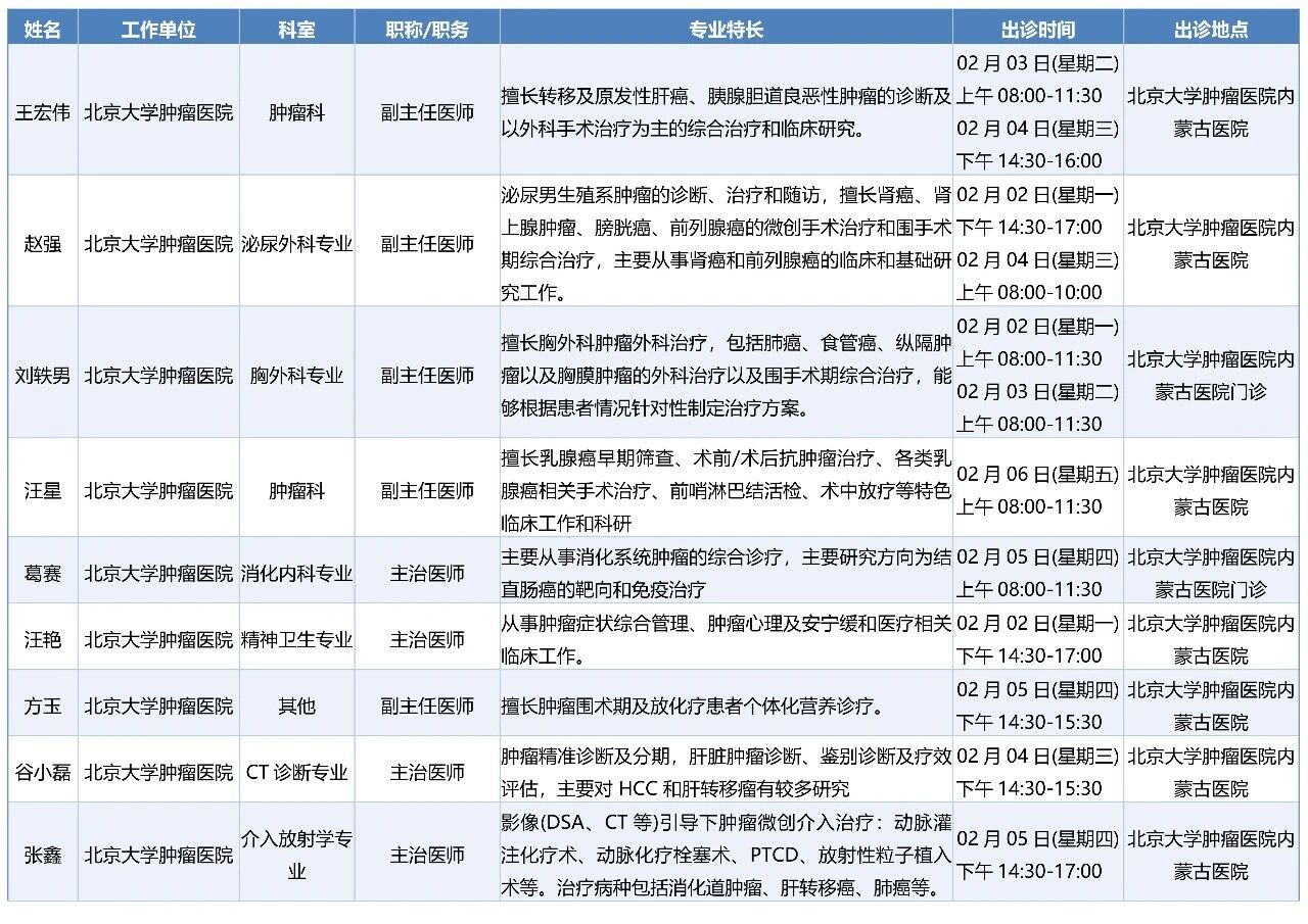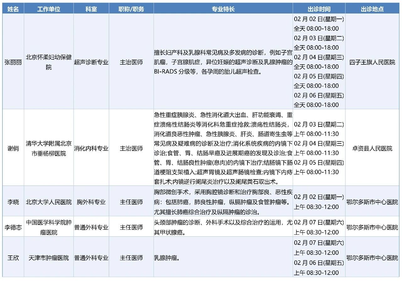 跨区域医疗协作-内蒙古引进优质医疗资源专家诊疗信息