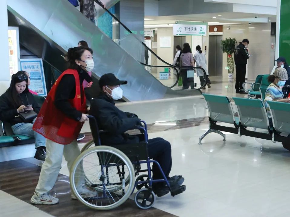 为了更好地服务老年人、残障人士等特殊群体,我院特别成立了“老年人及特殊人群关爱帮扶站”。这个关爱帮扶站不仅是一个实体的服务站点,更是一个充满爱心的服务平台,为患者提供及时的帮助和温暖的关怀。同时,我院还组建了由党员志愿者组成的全流程导诊志愿服务队。目前,已有约400名志愿者参与到这项服务中,他们身着统一的志愿者服装,佩戴党员徽章,主动亮明身份,活跃在医院的各个角落,为患者提供从入院到离院的全方位导诊服务。后续还会有更多志愿者加入到这项服务中,确保老年人及特殊人群在医院享受更加便捷、温馨、高效的就医服务。