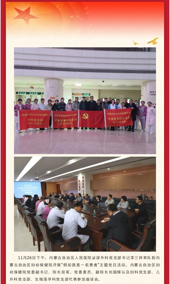 内蒙古自治区人民医院泌尿外科党支部与自治区妇幼保健院妇科党支部等联合开展“假如我是一名患者”主题党日活动